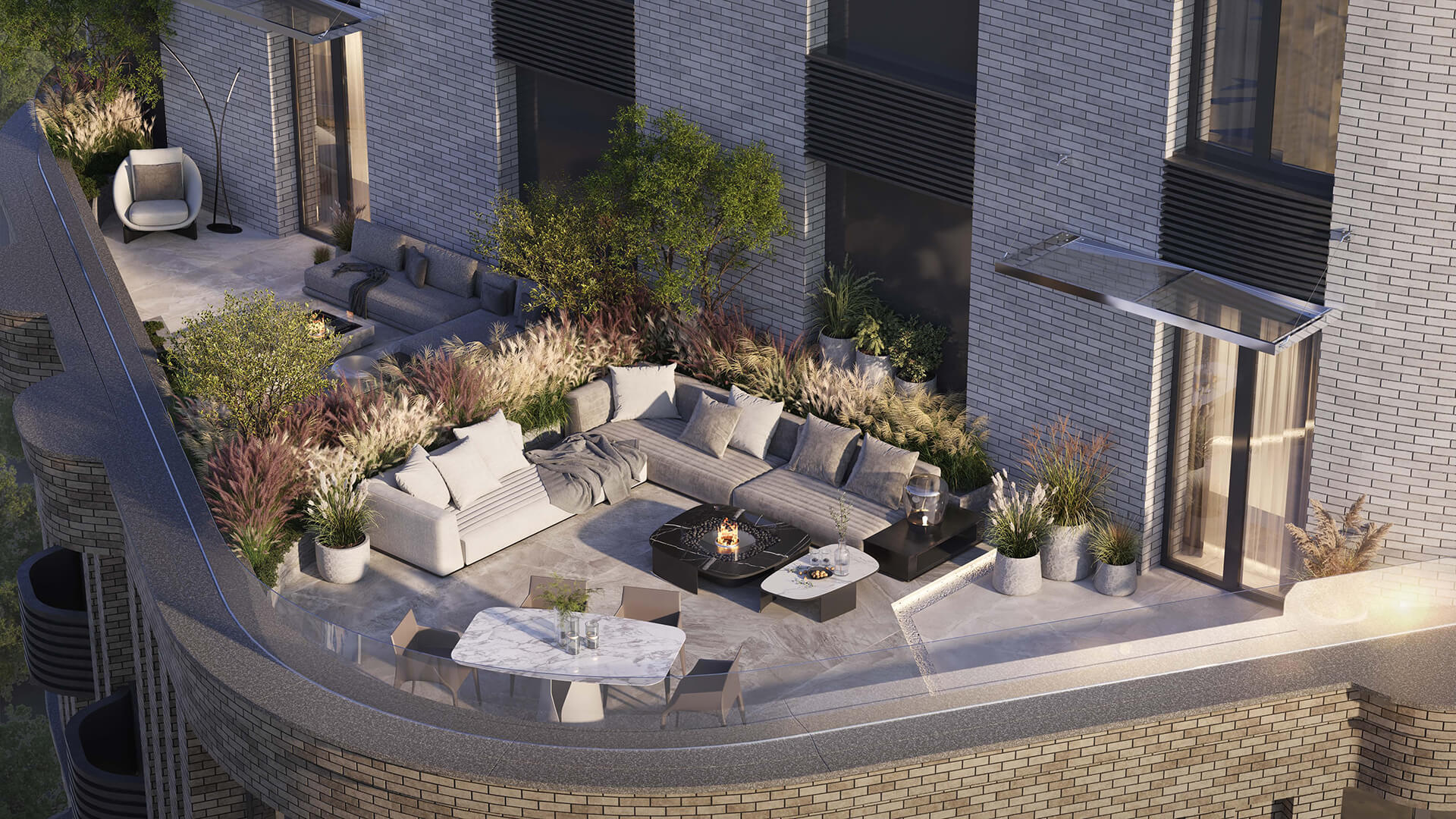 Уникальная геометрия остекления делает каждую квартиру максимально светлой и видовой. Панорамные окна наполняют пространство светом и раскрывают панораму старой Москвы, а приватные террасы расширяют зону комфорта — это полноценные пространства для отдыха, завтраков на свежем воздухе или тихого вечера. Квартиры предлагаются с подготовкой под чистовую отделку, позволяя реализовать авторские интерьерные решения.