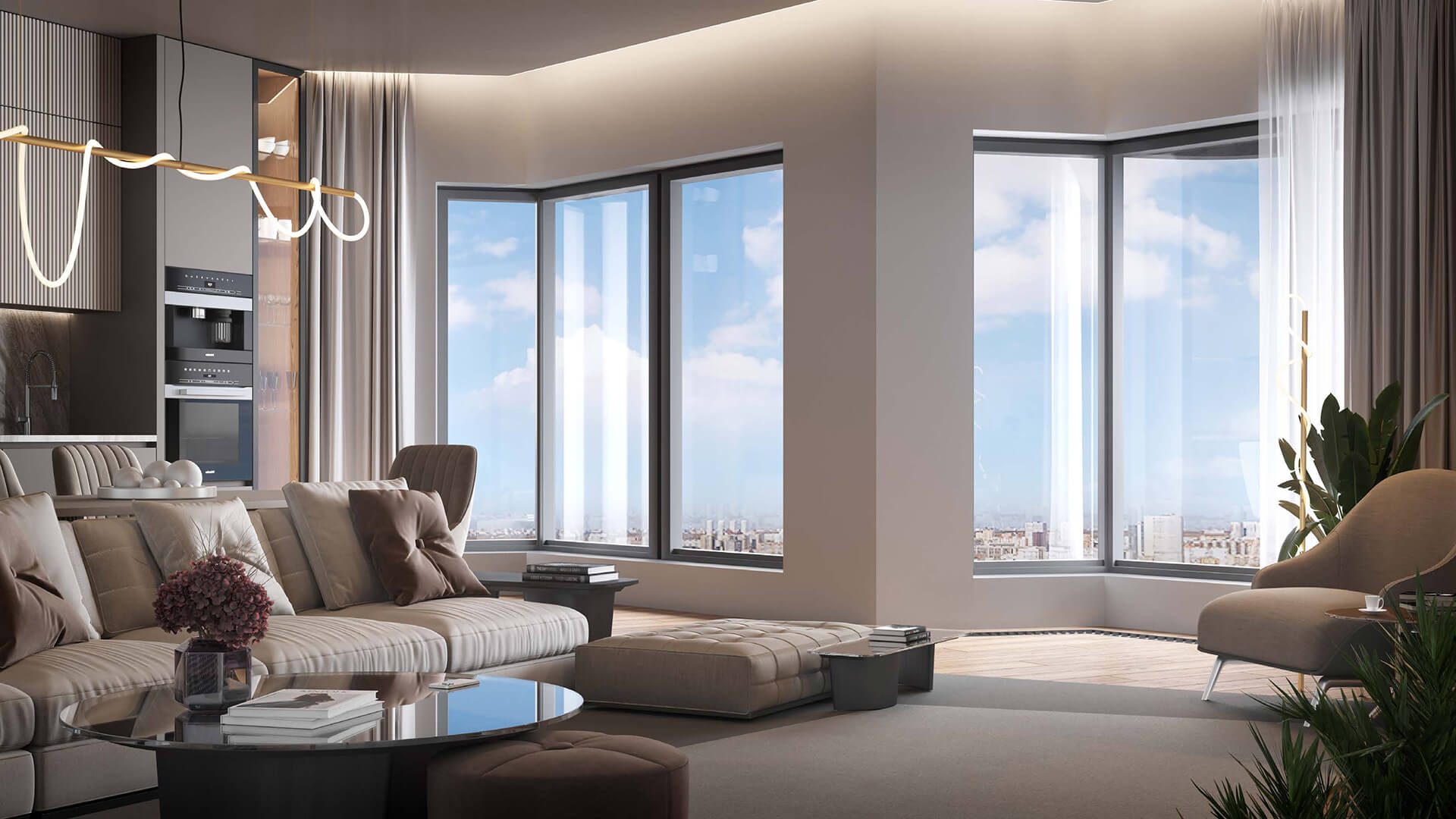 Уникальная геометрия остекления делает каждую квартиру максимально светлой и видовой. Панорамные окна наполняют пространство светом и раскрывают панораму старой Москвы, а приватные террасы расширяют зону комфорта — это полноценные пространства для отдыха, завтраков на свежем воздухе или тихого вечера. Квартиры предлагаются с подготовкой под чистовую отделку, позволяя реализовать авторские интерьерные решения.